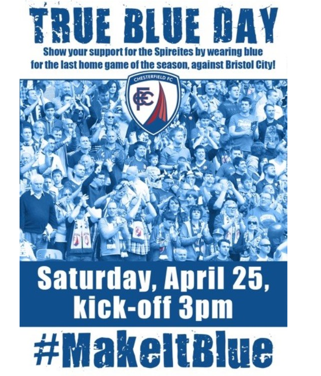 Chesterfield’s game at home to Bristol City on Saturday will be ‘True Blue Day’, with Spireites fans urged to wear blue to show their support for the club.