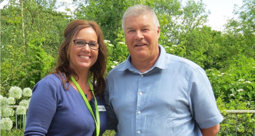 (Image shows chief executive of Ashgate Hospicecare Lucy Nickson with Chris Turner, chief executive of Chesterfield Football Club.)