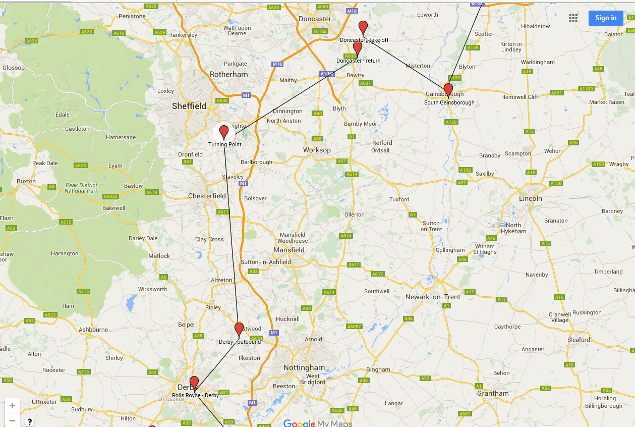 The flight will fly over north Derbyshire between 200 minutes and 210 minutes after take off.  No take off time has been released as of Saturday morning (8.50) but expected to be around 13.00 – If this is correct would fly over North Derbyshire between 16.00 and 16.30.  Full timings of the flight will be announced  on the Vulcan’s website