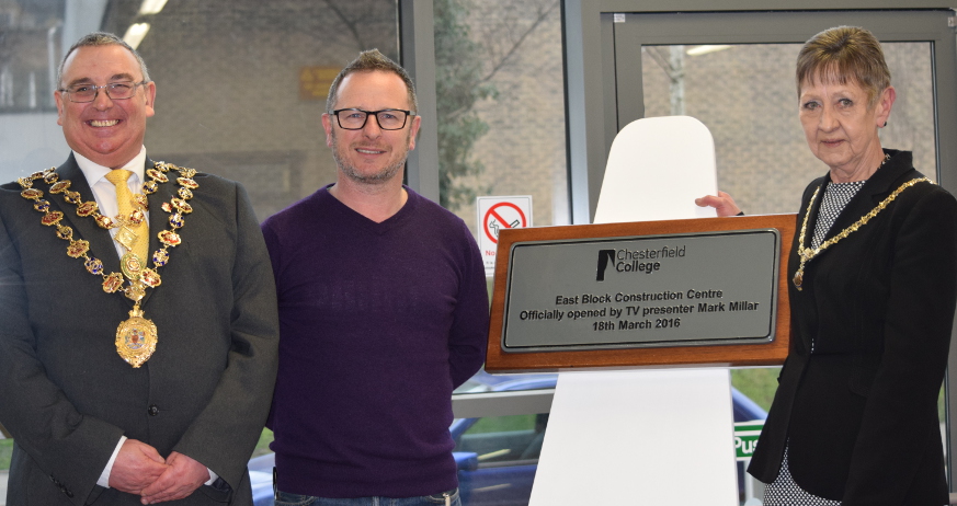 Celebrity carpenter Mark Millar from DIY SOS helped to celebrate the opening of the new construction workshops on Infirmary Road today, along with Chesterfield College’s Worldskills UK gold medal winning apprentice, Jack Chambers.