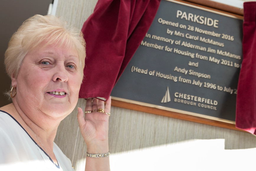 The building has been dedicated jointly to the memory of Alderman McManus and Andy Simpson, Chesterfield Borough Council’s head of housing from July 1996 to July 2013, who died in February 2015.