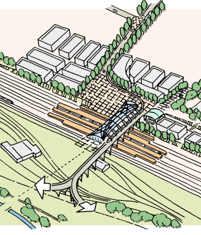 - an HS2 regional ‘rail hub’ at existing rail land at Toton, Nottinghamshire, with four ordinary rail platforms and two high-speed through lines, plus associated commercial and housing development;