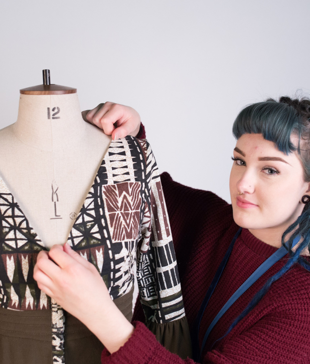 April sources materials that would otherwise end up in landfill, by using remnants or fabric she finds in charity shops and she also sources new materials that are created with the environment in mind. She designs and makes unique pieces of clothing for individual commissions which are a fusion of traditional and contemporary styles, with underlying African themes and inspiration.