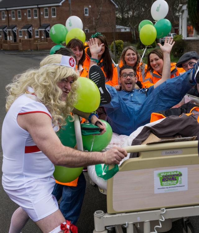 18 fundraisers will push a hospital bed 12 miles from a Dronfield pub to Chesterfield Royal Hospital to raise funds for the NGS Macmillan Unit at Chesterfield Royal Hospital.