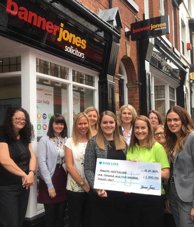 Chesterfield and Sheffield-based Solicitors, Banner Jones, has raised over £1,500 to support the work of Ashgate Hospicecare, following participation in the Ashgate Hospicecare Free Wills Month in May.