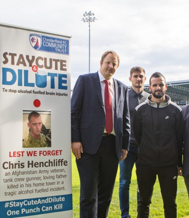Yvonne Henchliffe, whose son Christopher passed away after a drink-related incident in Chesterfield town centre last year, came up with the initiative called ‘Stay Cute & Dilute – One Punch Kill’.