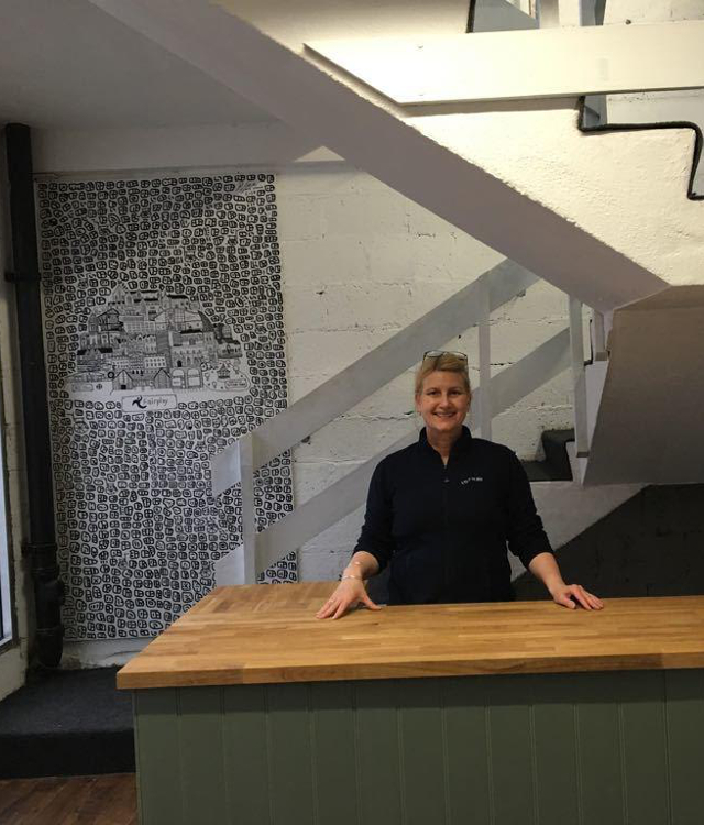 Manchester artist, Dave Draws, has created a mural at the new Fairplay Gift Emporium. Dave also created the Chesterfield Doodle Map Mural on the third floor of the H&F showroom highlighting many businesses and landmarks across the town.