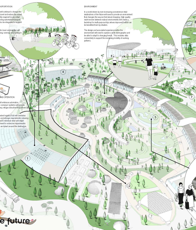 The Crown Estate/ Architects Journal ‘Future Retail Destinations’ Competition was open to all UK-based architects and asked entrants to design an innovative and successful out-of-town shopping destination for the year 2030 and beyond.