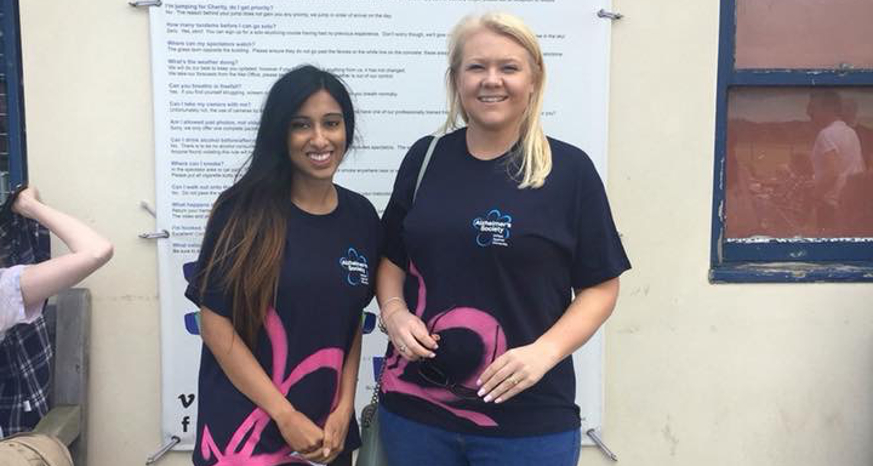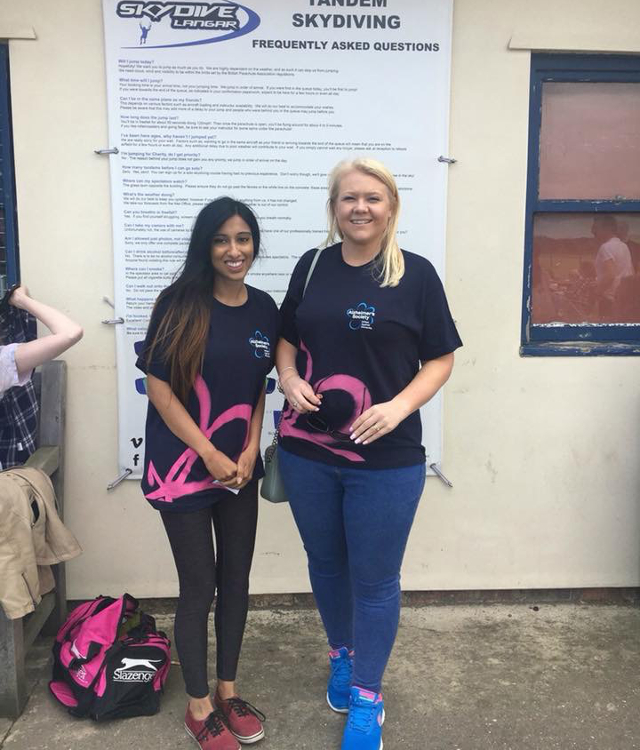 Banner Jones employees Sara Patel and Stacey Lee-Davenport jumped from 15,000 feet last weekend to raise funds for the Alzheimer’s Society, a registered charity that invests in vital research into dementia care, cause, cure and prevention.
