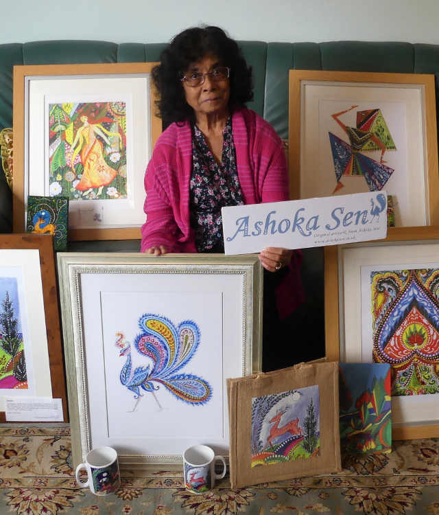 Ashoka Sen, from Holymoorside, who is a Day Hospice patient at Ashgate Hospicecare in Old Brampton, Chesterfield, has decided to donate her lifetime of artwork to raise funds for the Hospice. These intricate and vibrant paintings, prints and merchandise will initially be sold in the Hospice shop and at the Hospice’s Christmas Market on Saturday 17th November 2018.