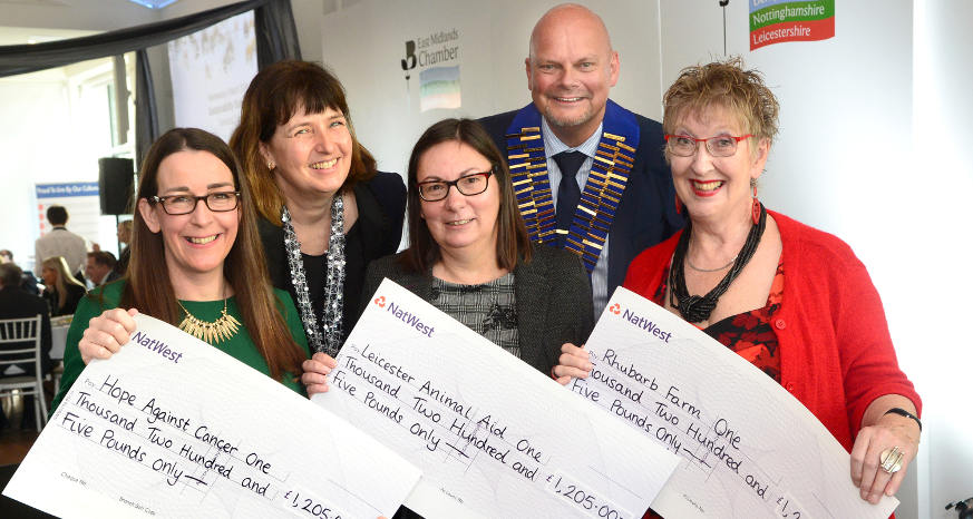 At this year’s Christmas Lunch, the three charities nominated last year – Rhubarb Farm, Leicester and Leicestershire Animal Aid and Hope Against Cancer – each received a one-third share of £3,615.