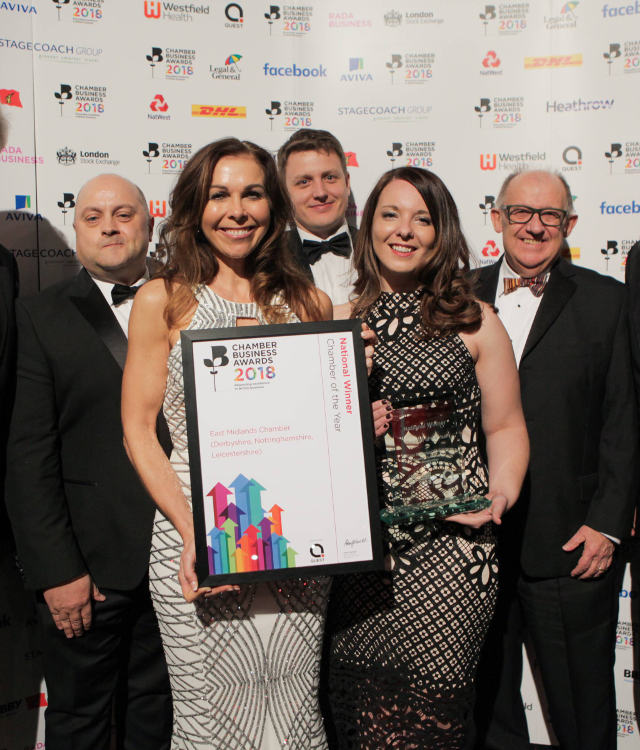 Steve Charles, Head of Business Partnerships at award sponsor Quest, said: “Congratulations to East Midlands Chamber (Derbyshire, Nottinghamshire, Leicestershire), deserved winners of this prestigious award.”