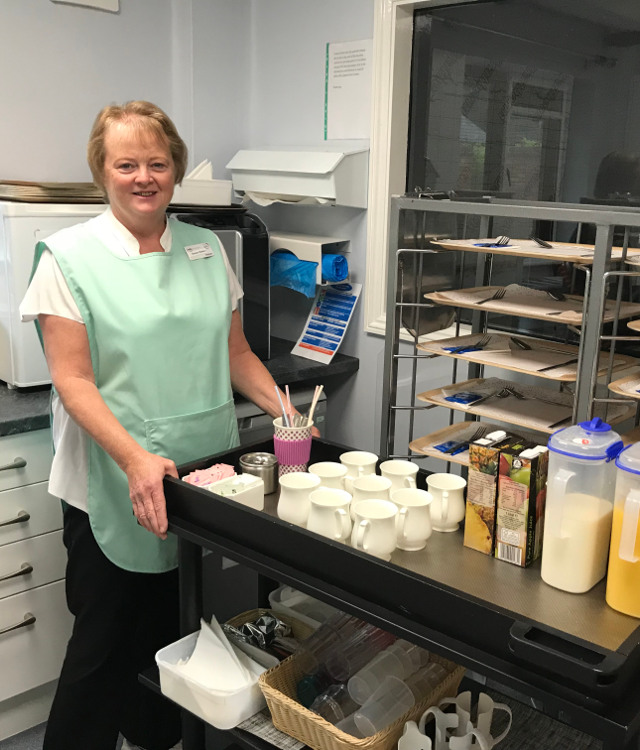 Colin Boynton, from Buxton, has volunteered for Ashgate Hospicecare for over a year on the Inpatient Unit. He said, “I get an enormous amount out of volunteering for the hospice. It’s a very special place to me and so when I come here and serve the meals to patients, I feel included and part of the hospice. It’s been hard for me since I lost my husband, Frank, in 2017, but volunteering here keeps me motivated and I feel very well supported by the staff. It feels nice to give something back and bring a smile to the patients’ faces. I’d recommend volunteering to anyone and, no matter whether you want to spend time with patients or help the hospice in another way, you’ll be able to build up your skills and confidence and feel proud to support their fantastic work.”