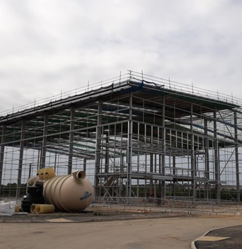 The steel framework has been completed enabling the placing of roof liner sheets to commence. The sub-base has been trimmed and works will commence shortly on casting the ground floor concrete slab. Other works to start during the month include fixing the wall cladding, the installation of a gas membrane and the installation of foul water drainage and the construction of surface water interceptors and outfalls.
