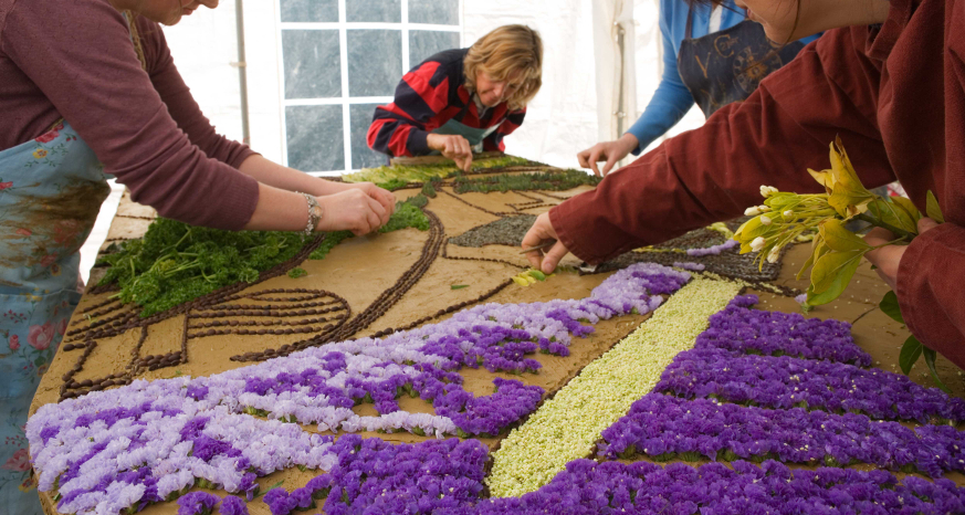 The well dressing at the town pump in the market place, designed by Chesterfield Borough Council, will feature Beauty and the Beast and the one in the porch at St Mary and All Saints’ Church, designed by church members, will feature All Things Bright and Beautiful – the famous hymn written by Cecil Frances Alexander.