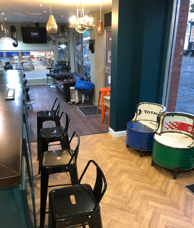 The barbershop is now able to offer their customers a selection of draught beers, bottles and cans as well as soft drinks and tea or coffee. The shop has also been extended, taking over the empty retail unit next door to expand their premises.