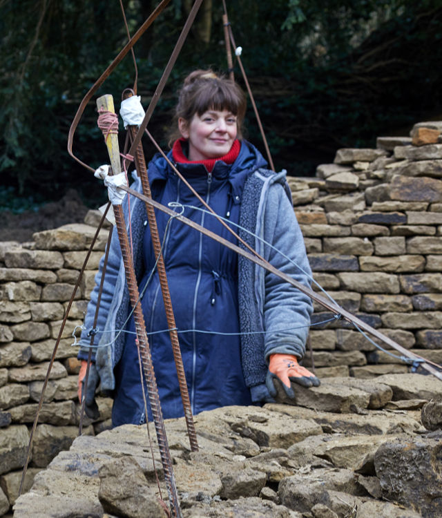 Built from more than 100 tonnes of local stone taken from the Bretton Moor Quarry near Foolow, less than five miles away, Natural Course will be made from tens of thousands of individual, hand placed pieces using a traditional dry-stone walling method. Work is underway with a small team of local dry stone wallers and Laura Ellen Bacon aims to complete the build by April 2020.