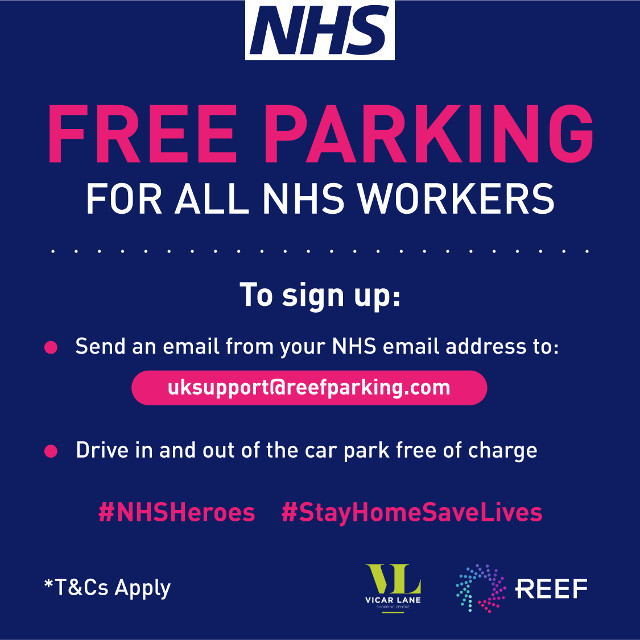 Shaun Brown, Centre Manager, Vicar Lane said: “To say thank you to all of the NHS staff who are working so hard right now, we want to offer entry to our car park at no cost to the NHS for the duration of this pandemic. We hope this will make life a bit easier for those of you who need to get into town during this uncertain time.”