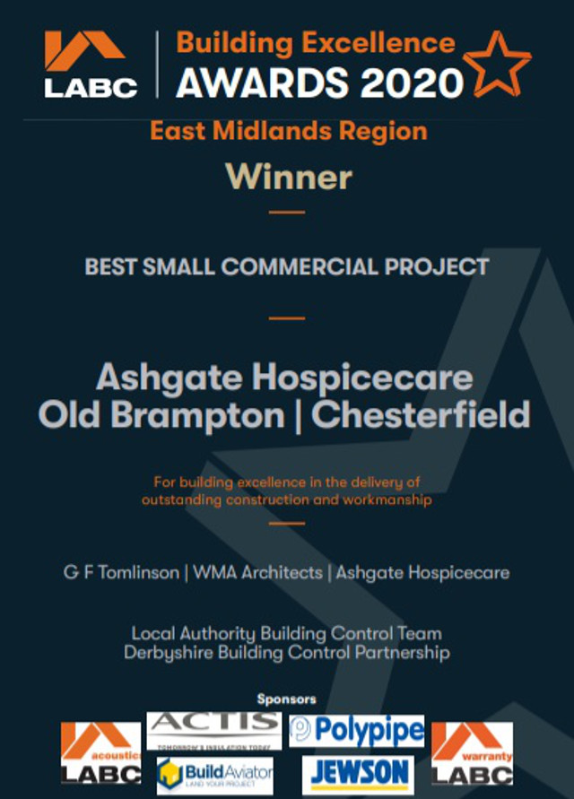 Ashgate Hospicecare’s project to create nine new private bedrooms was named as the Best Small Commercial Project at the virtual LABC East Midlands Building Excellence Awards 2020.