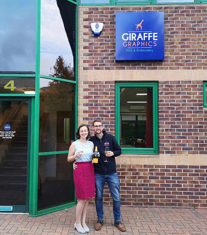 Like many other business owners, Chris and Rebecca Blackwell made the difficult decision to close during the beginning of lockdown. Once the appropriate safety measures were put in place, and it was deemed safe to turn on the embroidery machines once more, Giraffe saw demand soar for workwear, paper print, design, and signage.