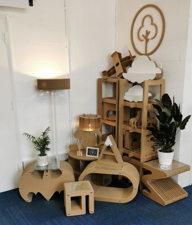 Lizzy Barker, structural packaging designer at Corrugated Case Company said: “Our journey starts over 20 years ago manufacturing standard cardboard boxes for business and commercial use. During our spare time, with our creative minds & understanding of cardboards amazing properties, we designed some pieces for the office and our own homes.