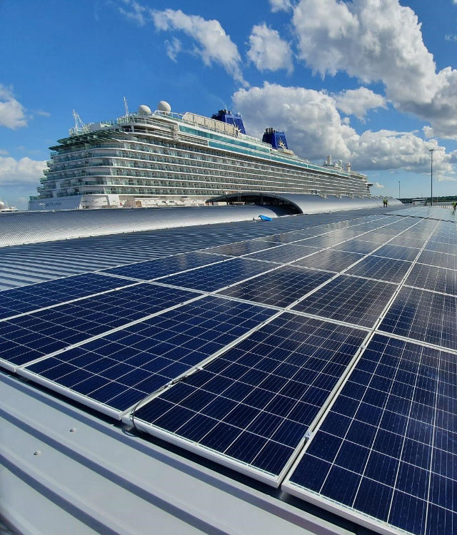 The latest development in partnership with Associated British Ports sees the Horizon Cruise Terminal fitted with 2,000 solar modules, providing an 871kWp (Kilowatt Peak) system which will generate 850MWh per year. This ultimately means that on a day-to-day basis the terminal will generate more energy than it uses.