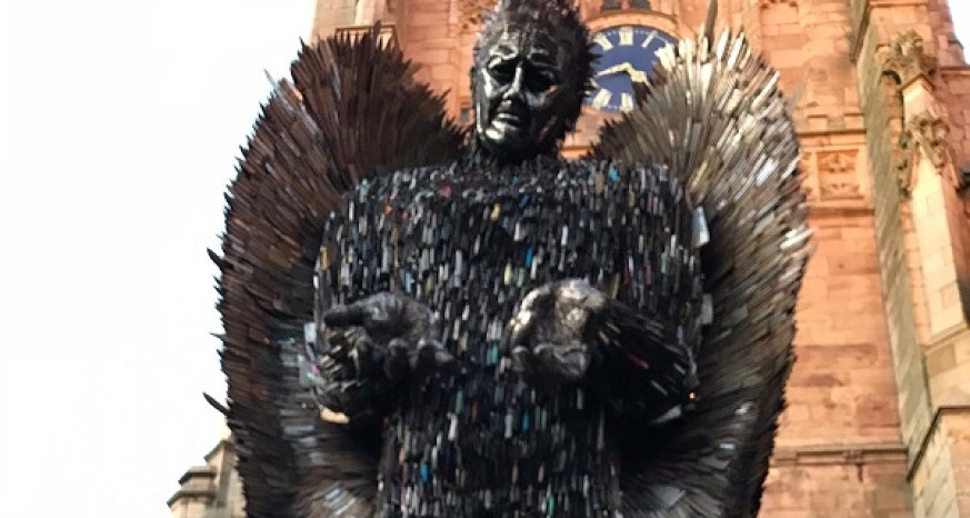 In support of the visit we will be holding and backing a number of events including: a ‘drop the knife’ performance held at Spring Well High School by the Salt Mine production company, several public engagement sessions at the Knife Angel and a knife disposal bin will be at the monument on a Monday-Wednesday-Friday between 11am and 2pm.