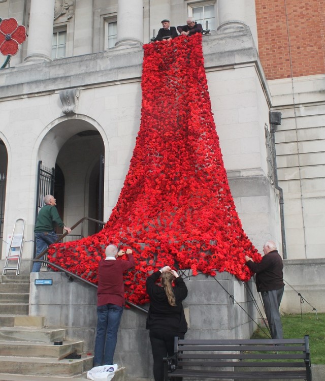 As we move towards Remembrance Day the remembrance poppy cascade, created by the community, has once again been installed on the Town Hall.
