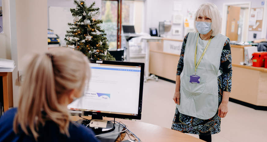 Among those volunteering on Christmas Day this year are Ward Volunteer, Andrea Jenner, and Volunteer Receptionist, Lesley Walton, who have been volunteering at the charity for 27 years between them.