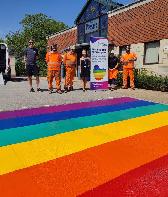 A zebra crossing at Ashgate Hospice has undergone a colourful transformation to celebrate diversity and show support for the LGBT+ community.