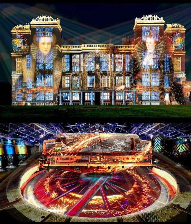 The large-scale projections taking place in Chesterfield and North Derbyshire include Barrow Hill Roundhouse and the National Trust’s Hardwick Hall.