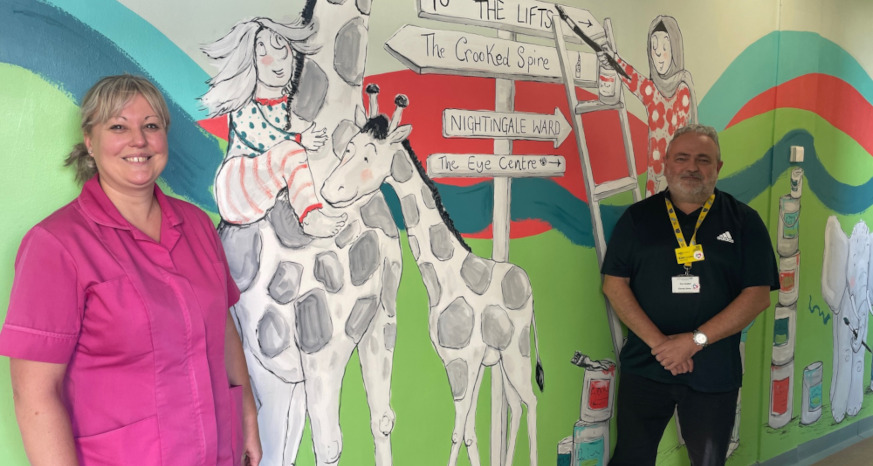 Ken Godber, Charity Director said: “Charitable funds allows unique opportunities to improve the ‘face’ of our hospital, benefiting colleagues, patients, and visitors. This corridor leading to our children’s ward was plain and uninviting – now with Sally’s mural, the journey to our Nightingale Ward is exciting and certainly more welcoming for our patients.”
