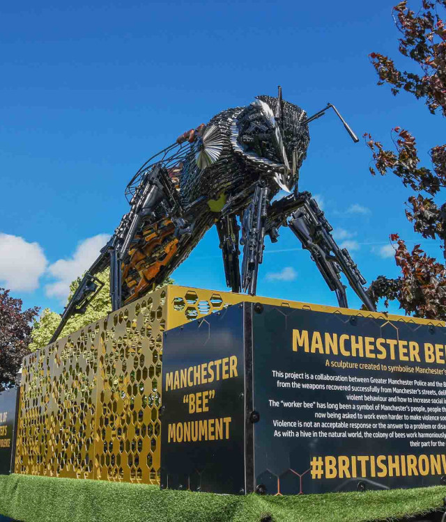 Originally created for Manchester, the 11ft tall monument was created using various weapons, including knives and firearms, seized from the city’s streets.