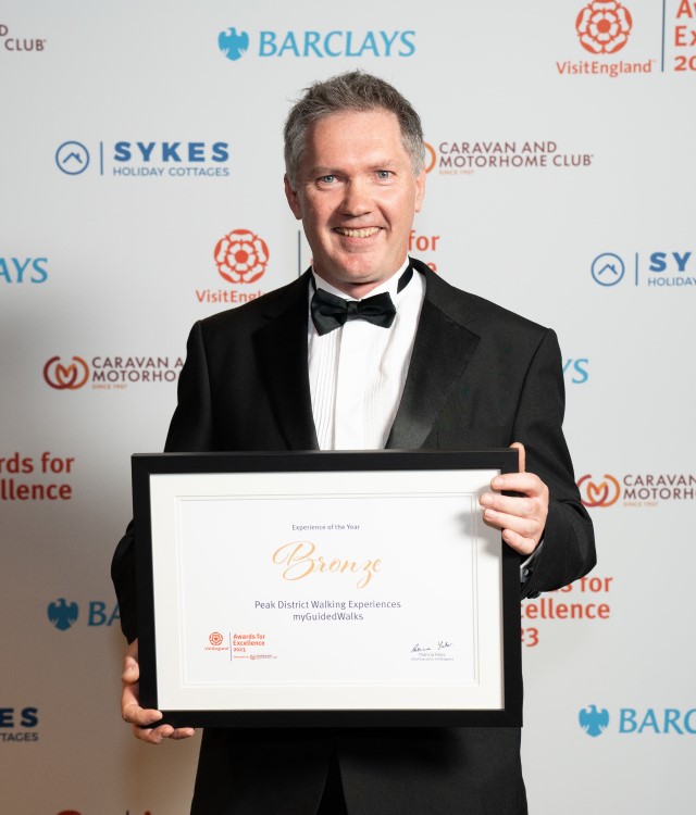 Paul Smith, Founder and Guide at myGuidedWalks, Bronze winners in the Experience of the Year category, said: “MyGuidedWalks are thrilled to have won Bronze for Experience of the Year at the national VisitEngland Awards for Excellence. This is a huge honour for us, and we are so grateful to our customers, family, friends and other Peak District and Derbyshire businesses for their support. A big special thanks also to the Visit Peak District & Derbyshire team for their support and training over the last 5 years.