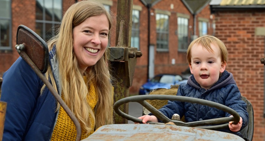 Mum and son playing on a tractor at Ashgate Hospice's Tractor Fest