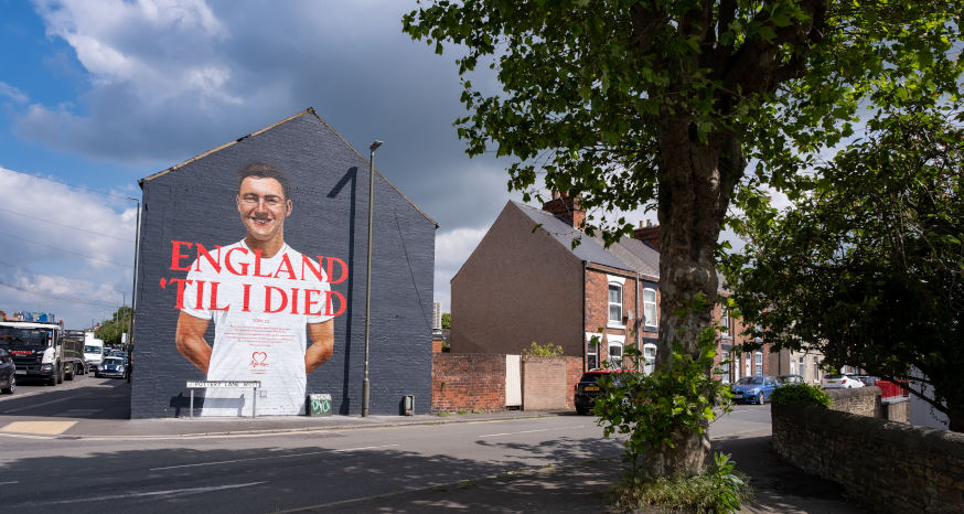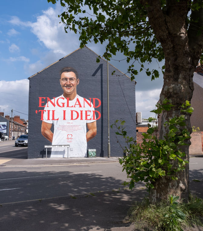 Located at Whittington Moor, Chesterfield, the mural features the emotive message ‘Til I Died’. At a time when people are looking forward to watching the month-long football festival with their family and friends, for families like Tom’s, it is yet another poignant reminder of loved ones who are no longer with us.