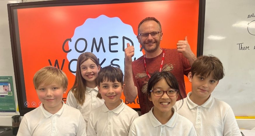 During the day, pupils explored what makes people laugh, learned how to construct the perfect punchline, and had the chance to write and perform their own comedy sketches. The session also included improvisation exercises and caption-writing challenges designed to boost creativity and confidence.