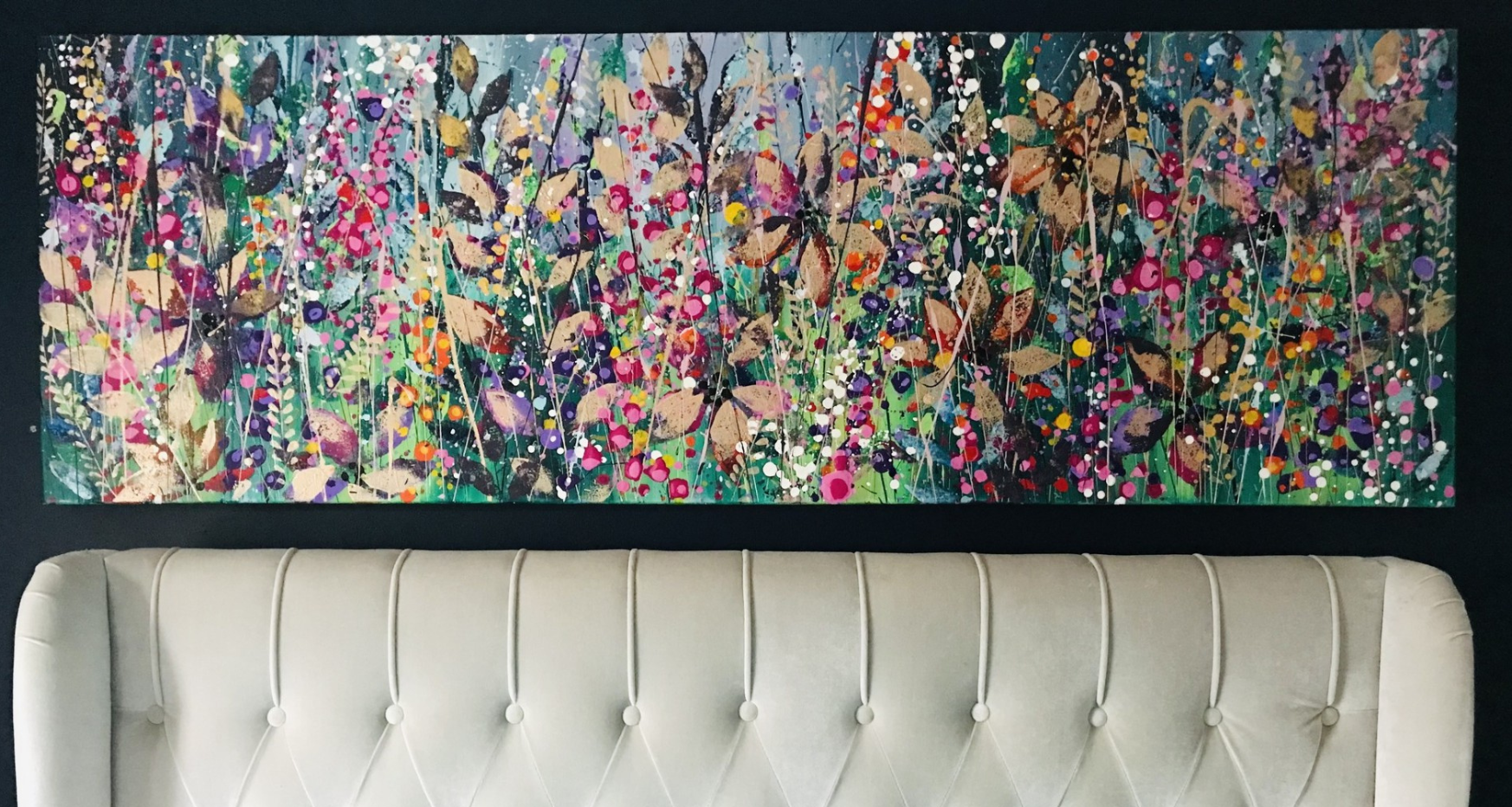Having studied fine art at university, specialising in textiles, print, and surface pattern design, Sarah has always loved experimenting with colour and media. During the COVID-19 pandemic, when canvas and paint were scarce, she and Chris developed a solution: rescuing pre-loved canvases and upcycling them, giving them new life while creating beautiful, affordable art. Acrylic and watercolour are her main media, though she embraces all materials to achieve the desired effect, often celebrating happy accidents in her work.