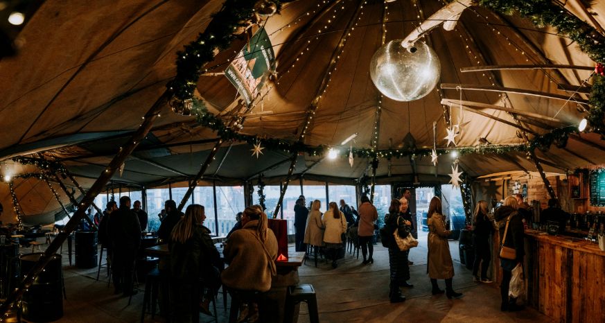 Soak up the atmosphere at Tipi Christmas, where you can gather around a roaring fire with a drink in hand.