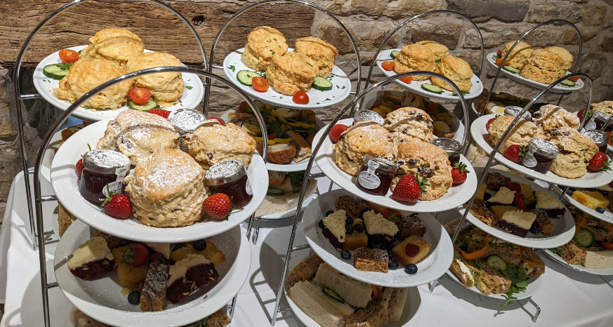 Enjoy a Christmas Afternoon Tea on a crisp winter afternoon with a turkey, brie, cranberry, and stuffing sandwich, pigs in blankets, roast potatoes, stuffing balls, a warm mince pie, mini-Christmas pudding with a jug of brandy sauce, and mini–Baileys Crème Brûlée. Served with a glass of mulled wine and coffee to finish.