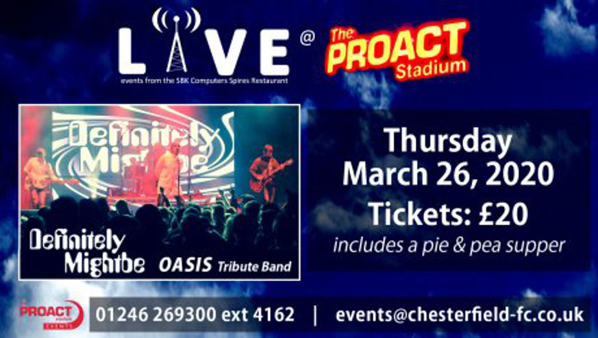 Head to the Proact Stadium on the 26th March 2020, for an evening with the longest established Oasis tribute band in the world, Definitely Mightbe.