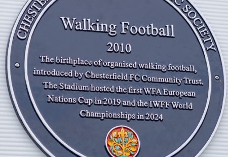 Read more >A blue plaque has been unveiled outside the HUB at the SMH Group Stadium, to mark Chesterfield as the birthplace of walking football.