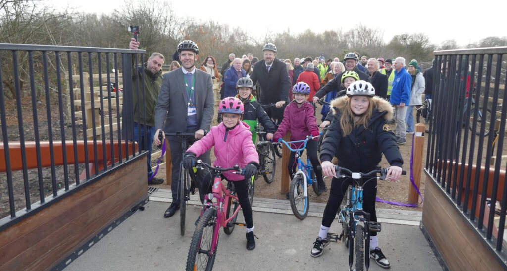 A group of children from Hollingwood Primary School were the first to ride across to great applause from about 40 guests representing all the organisations involved in bringing the project to fruition.