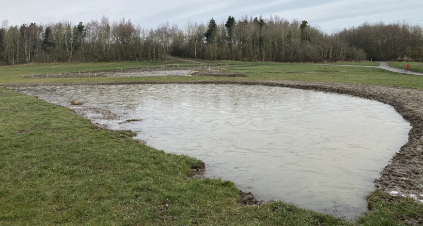 The £275,000 scheme, designed to slow the flow of rainwater heading from land to the Calow Brook – and onwards into the Rover Rother includes the creation of temporary and semi-permanent ponds, marshy grasslands and wet woodland – all acting as a natural flood defence while improving and diversifying the habitats for wildlife within the park.