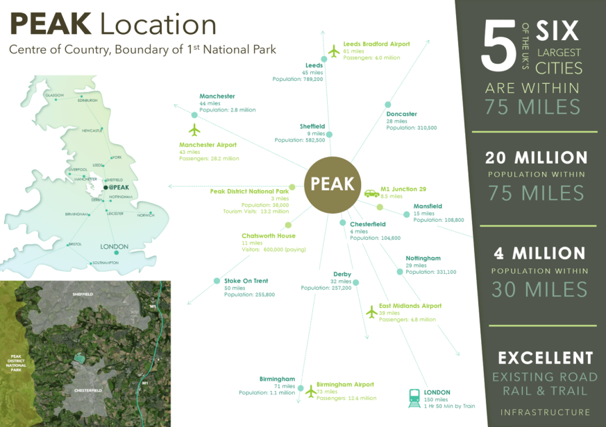 The Gateway at PEAK will be an international standard tourist destination providing a basecamp and a gateway into the 550 square mile Peak District National Park.