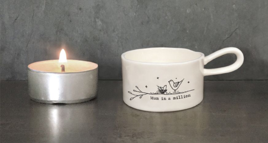 The Ceramic Tea Light Holder by East of India comes beautifully boxed with a candle. Explore a fantastic range of Mother’s Day cards too at Huckleberry Willow, along with jewellery, candles, scarves, socks, and more. Best seen in-store for the full selection.