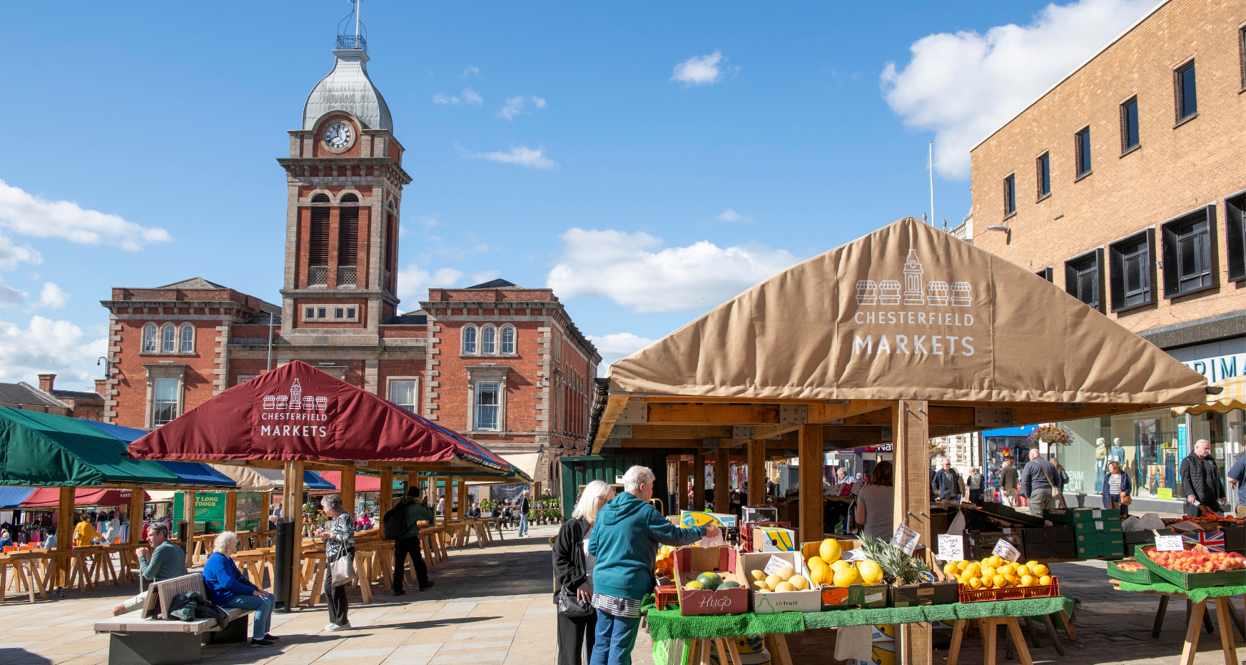 Our newly transformed Market Place and Market Square are vibrant destinations, full of energy colours, and character. You can already get closer to our historic Town Pump, explore new stalls featuring heritage-coloured canopies, and pause for a moment on our modern, wooden benches.